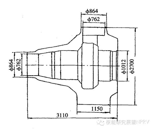 上述的5种规格的主泵中有桶型和准球型两种低碳Cr-Ni不锈钢材质的铸造泵壳供选配。MHI在主泵的国产化中也试用过SA508 CL.3低合金钢,整体锻造的泵壳(图4),内部过流表面堆焊低碳不锈钢。KSB公司也只优选了一种型式的整体锻造泵壳。这样,由叶轮和导向器组成的水力部件就成了主泵的主要的可变有效载荷模块。PWR核电机组中,主泵的配置是相对固定的,也可以说是“模块化”的配套。法马通核能公司只选择100D型主泵用于法国国内的1000~1300M W核电机组,自主开发的N24型主泵只用于法国风格的N4 1500MW 4环路设计和所谓的法国第三代核电技术的EPR 1600设计。MHI只选用93A1型主泵用于60Hz系统,100D型主泵用于50Hz系统。100A型主泵是100D型的改进设计,用于MHI自主开发的APW R 1500型4环路核电机组。