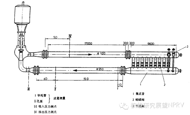 美国BJ公司在1970年代已拥有了世界上仅有的7座全负荷试验台中的4座,其中的3座集中安装在洛杉矶工厂的一个面积为2320m2、高30m、吊车能力为100吨的专用测试厂房内。一座试验台的管径为25英寸(DN650mm),QD=6.3 m3/s;另两座台架相同,管径为42英寸(DN1000mm),QD=12.6 m3/s。管道用低合金碳素钢铸焊而成。